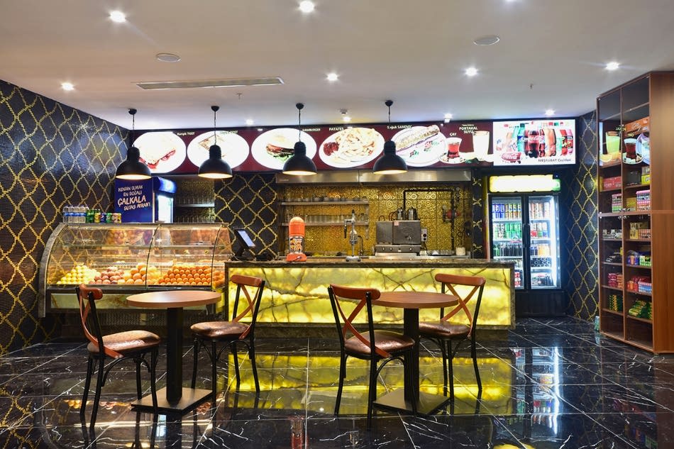 Dinlenme bölümünde yer alan kafemizden sıkma portakal suyunuzu yudumlarken aynı zamanda tv keyfi de yapabilirsiniz.